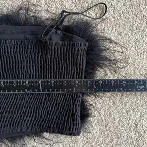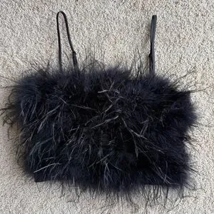 Lucy Paris Feather Trim Crop Top Black Strapless Camisole XS Party Y2K
