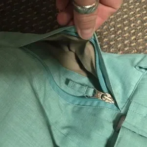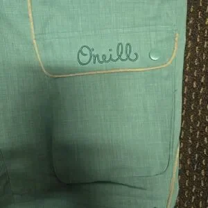 O'Neill women's snow pants in teal blue. Multiple cargo pockets with flap closures, some with zip closure. Contrast piping detail. Gaiters at the hem. Zipper and snap fly closure. Zippered leg vents with netting. Cute drawstring cinch on rear, plus 2 velcro cinches to make them fit just right. I would say these fit true to size and would best fit over size 12 to 14, 15. They are very warm and weather proof. They are in great shape, all zippers and snaps in tact, they just don't fit me anymore.
