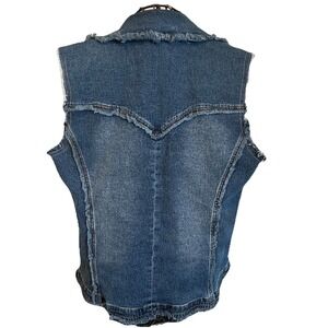 DG2 Embroidered Denim Vest Women's M Floral Rose Pockets Frayed Hem Boho Y2K