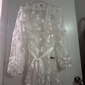 With delicate floral applique, this exquisite mini robe is the perfect addition to your bridal trousseau.