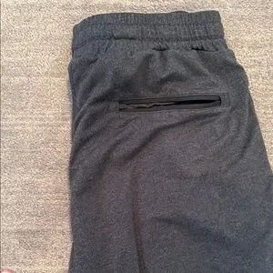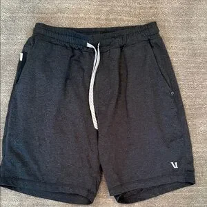 Vuori soft shorts with a zipper pocket in front pocket and one zipper back pocket.