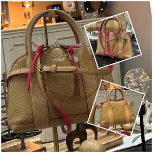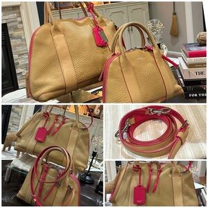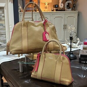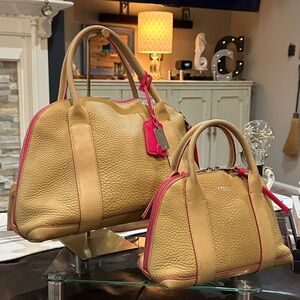 Coach Tan Leather Satchel with Pink Trim (Set of 2)