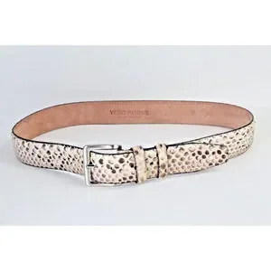 Vintage Snakeskin Leather Belt Gray White Ornate Silver Buckle Boho Exotic Sz 34
