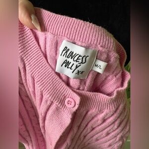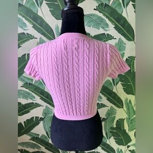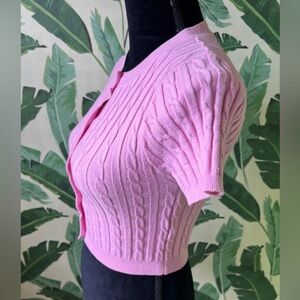 Princess Polly Womens Pink Cableknit Short Sleeve Cropped Cardigan Sweater M/L