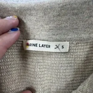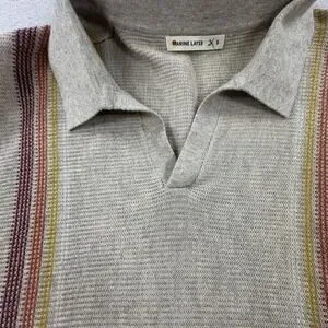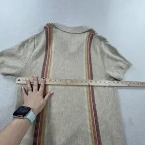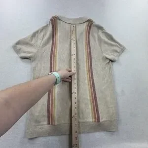 Marine Layer Retro Polo Shirt Mens Small Beige Stripe Knit Wool Blend Casual