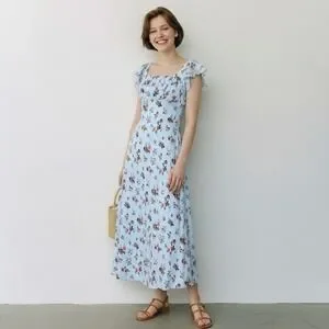 Keywords: floral maxi dress, blue floral dress, cottagecore dress, rayon maxi dress, square neck dress, wild fable dress