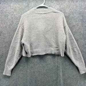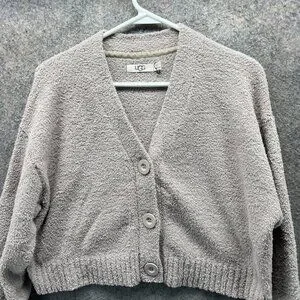 UGG Cardigan Womens XS Beige Button Front Fuzzy Cropped Sweater Polyester Cozy