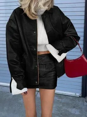 Faux Leather Jackets for Women Open Front Coats/ Oversized Jackets for Women Trendy/ Fall Fashion Jackets/ Women Motorcycle Jacket/ Biker Jacket/ Zip Up Jackets for Women/ Warm Winter Coats Women Outerwear