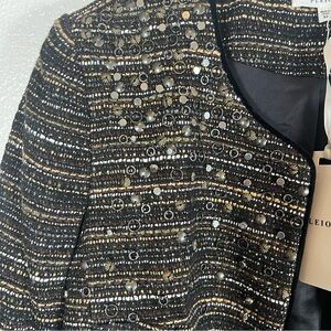 NWT Anthropologie Pleione Bellatrix Embelished Tweed Open-Front Cardigan Jacket