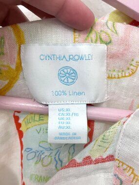 This is a gently used Cynthia Rowley Olive Oil Colorful Print Linen Long Sleeve Size XL. In excellent condition. Minimal wear. See all pics for condition.