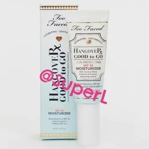 Too Faced has taken the replenishing and soothing essence of their iconic Hangover Primer to the next level with this lightweight moisturizer with a heavyweight defense created specifically to hydrate and protect your skin while helping your makeup look better. The formula is infused with a blend of nature's hydrators, along with skin loving ingredients like Cinnamon Bark extract, Jojoba Oil, Aloe Vera extract, coconut water, and skin care star Hyaluronic Acid to help nourish skin. The powerful non-greasy formula, with vitamins E, C, and pre-and-probiotic-based ingredients, provides broad-spectrum UVA/UVB SPF 25 protection. May ship with or without box.