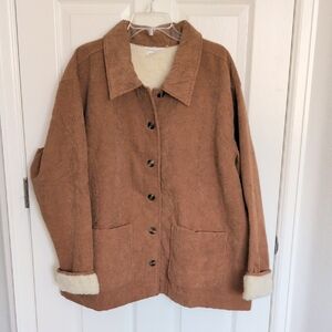 Button down corduroy shacket with faux sherpa lining, two front pockets. Size XXL.