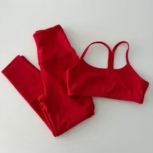 Beyond Yoga Spacedye Red Leggings & Sports Bra Set