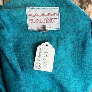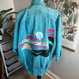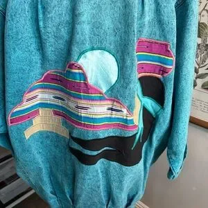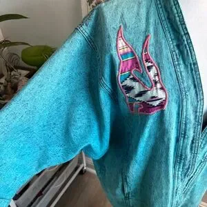 Vintage Sundance Turquoise Jean Jacket with Southwest Embroidery Large