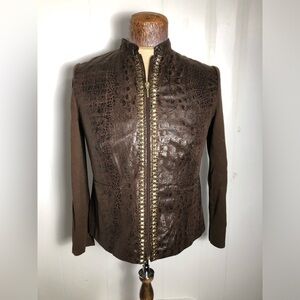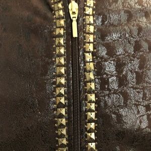 Women’s Brown Faux Leather Gold Studded Blazer. Size Small/Petite.