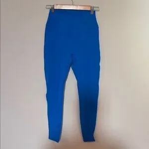Vibrant royal blue active leggings by BuffBunny. High-rise waistband with a flattering V-seam. Smooth, stretchy fabric for workout comfort. Streamlined full-length fit.