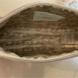 Elegant Papaya! lavender cosmetic bag featuring a whimsical owl design. This beautifully crafted bag is extremely versatile and easy to clean. Designs crafted by a creative mother-daughter team in Medford, Oregon.