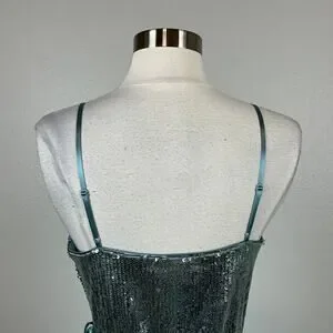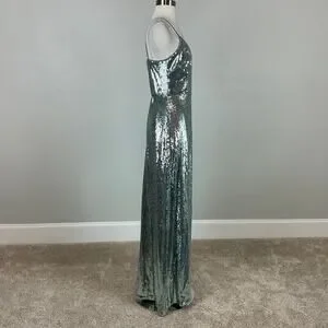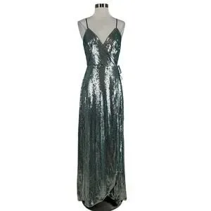 Aidan Mattox Sequined Wrap Evening Gown Size 8 Sparkly Green-Blue Formal Dress
