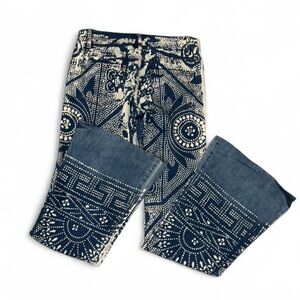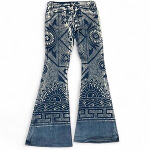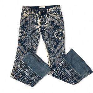 Free People Navy and Cream Printed Flare Jeans