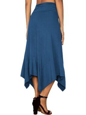 Women's Blue Pull On Flowy Handkerchief Hemline Romantic Hanky Hem Midi Skirt