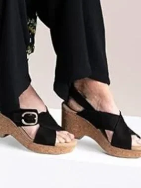 Clarks Collection Women's Giselle Dove Wedge Sandal, Black Nubuck, 8.5 Medium US