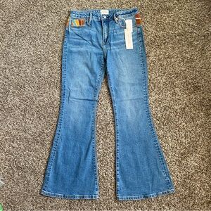 DRIFTWOOD Blue Flare Jeans with Multicolor Sunburst Waist