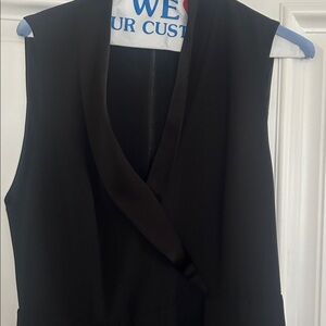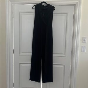 Alice + Olivia Classic black sleeveless jumpsuit tuxedo look with satin color... wide leg with opening on each leg ...