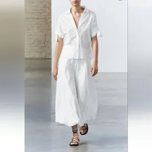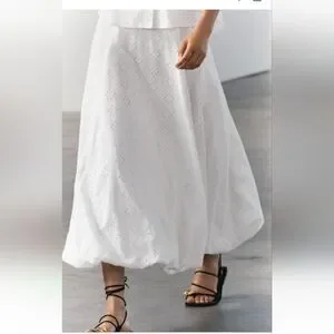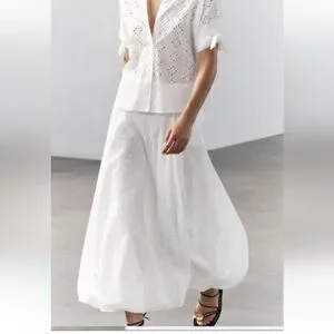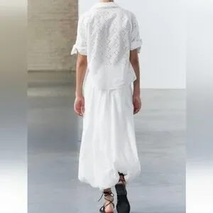 Zara ZW Collection Voluminous Skirt with Cutwork Embroidery Sz-L