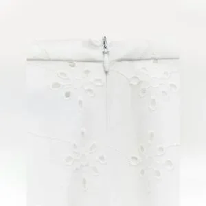 mid rise midi skirt made of 100% spun cotton, matching cut work embroidery, voluminous hem, back hidden in-seam zip closure, lined