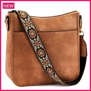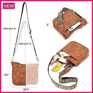 Vegan Leather Crossbody Bag with Wide Strap, Adjustable Hobo Purse