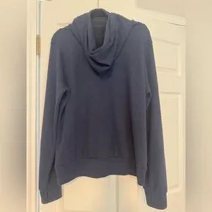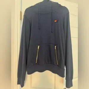 Soft heather navy pullover hoodie. Picture from website is charcoal, but this one is Navy. Quilted inner collar and stitched label. Very soft comfortable hoodie! This is unisex.