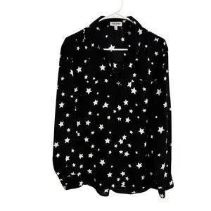 Express Portofino Shirt Womens XL Black White Star Print Roll Tab Button Down