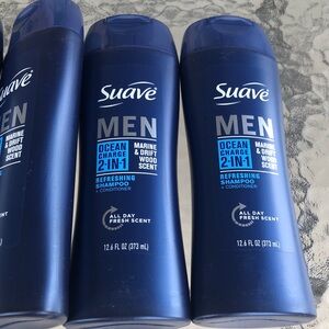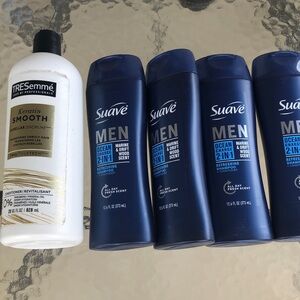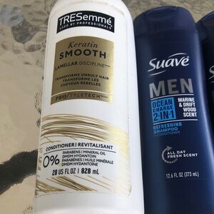 Suave Men Ocean Charge 2-in-1 shampoo and conditioner in navy blue. Cleanses and conditions in one step for an energizing marine and driftwood scent. Formulated for men to leave hair refreshed and manageable. Easy-use cap for a quick shower routine.Tresemme Keratin Smooth