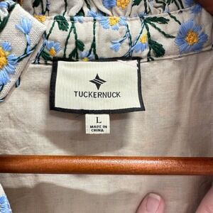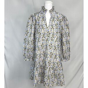 Tuckernuck Women Sz L Palmerson Dress Blue Floral Embroidered Ruffle Babydoll