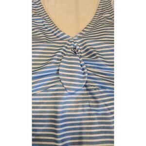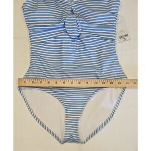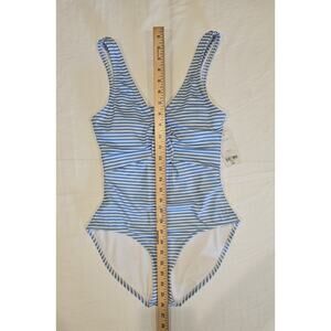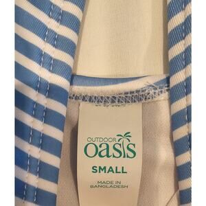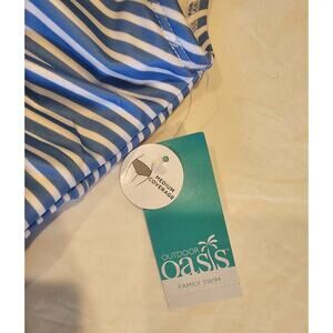 Elevate your swimwear game with this colorful Oasis one-piece swimsuit in size S. The athletic top with a striped pattern and stretchy material offers both style and comfort. The bikini-style bottom provides a flattering fit for all body types.