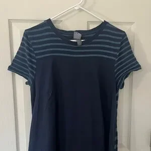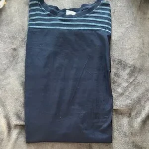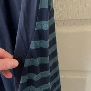 Comfortable and trendy women's maxi dress in navy with teal stripes. Soft, breathable fabric and a relaxed fit for easy all-day wear. Casual style perfect for errands, travel, or weekends. Includes teal striped detail on the yoke and sleeves for a modern, layered look. I love this piece and just too big :)