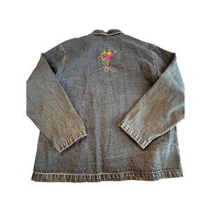 Embroidered Novelty Shacket Ice Skaters Denim Jacket Winter whimsical Teacher M