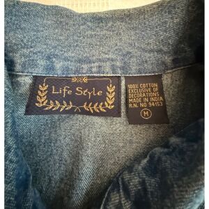 CONDITION: Excellent no flaws. SIZE: Women's M fits 8–10. MEASUREMENTS: Pit to pit 22", Length 25.5". MATERIAL: 100% Cotton Denim. SEASONS: Fall Winter Holiday. STYLE AESTHETICS: Teacher Core Whimsical Novelty Winter Festive Artsy Retro Crafty. OCCASIONS: Classroom Events School Holiday Parties Winter Outings.