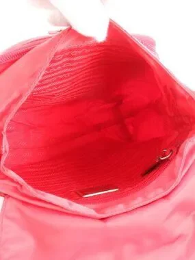 This is an authentic Prada Tessuto Nylon Triangle Logo Shoulder Bag in red. The bag features Prada's signature triangle logo, a buckled strap closure, and is crafted from durable nylon fabric.