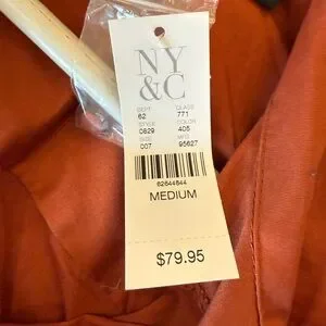 New York & Company Rust Shirt Dress Midi Long Sleeve Collared Belted M