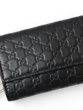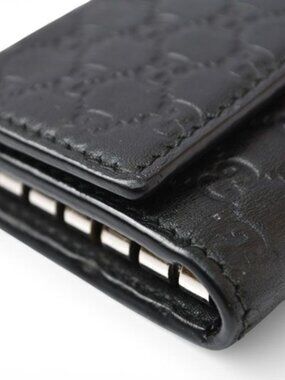 Description: This is the Key Case from Gucci.The simple black color creates a mature atmosphere.The Guccissima line exudes a sense of luxury.The GG pattern is shaped on the surface.The large ring is also compatible with keyless accessories.It is a Gucci accessory.