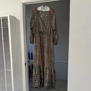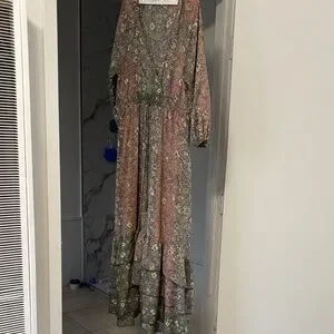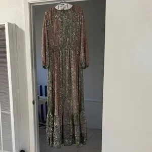 Anthropologie boemo Floral Maxi Dress in Pink and Green