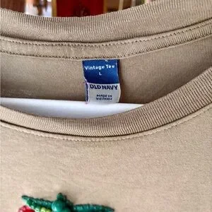 Olive green long sleeve tshirt with a hand beaded red tomato applique at the chest. Simple crew neck. Casual and playful detail. Wash delicate, air dry only.