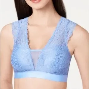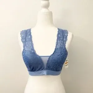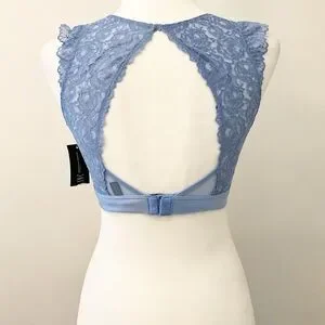 Stylish blue bralette with elegant lace trim. Comfortable and chic design.