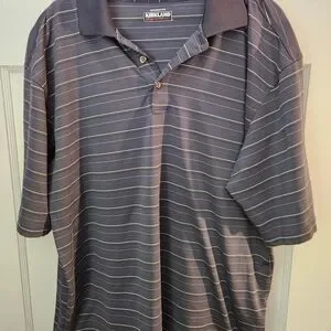 Kirkland Signature Men's Polo Shirt in Dark Gray with Light Stripes