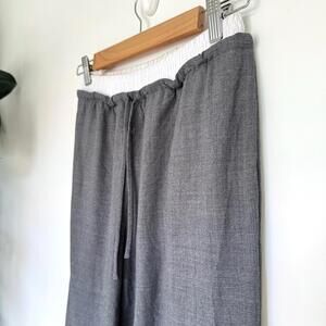 These are relaxed wide-leg pants with a cinchable drawcord and a contrasting double waistband. They're expertly tailored with City Wool — softly structured stretch wool twill for all-season, all-city wearability. This fabric is sourced from a premier Italian mill.