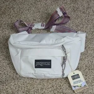 The JanSport white hip/sling bag combines a sleek design with durable construction, making it an ideal choice for everyday use. Its sporty aesthetic and minimalist style ensures it stands out while offering practicality and comfort. Perfect for those who value both fashion and functionality in their accessories.