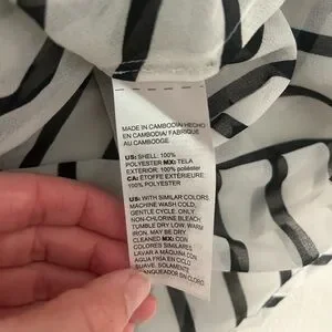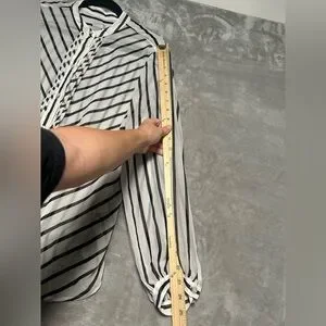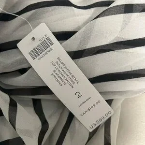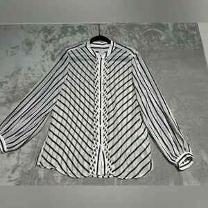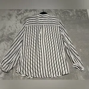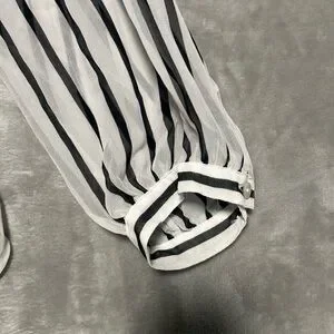 Chico’s Billow Sleeve Blouse Top Sheer Black White Stripe Women’s 12/14 2