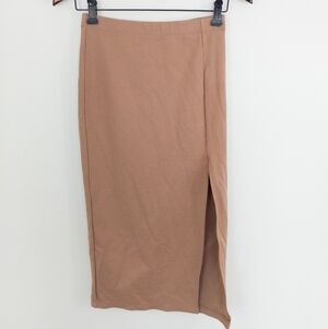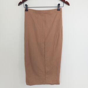 Babaton Midi Pencil Slit Skirt Size 2. Elastic waistband High-rise Stretchy Soft fabric Rayon blend. Condition: great pre-owned. Measurements: Waist 12.5" Length 28.5" (All measurements are approximate & taken while the garment was laying flat) Pet-free and smoke-free home.