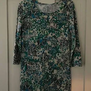 Lilly Pulitzer Teal Aqua Cream Corine Dress Sea Oat Everglades with zebra and tiger pattern.